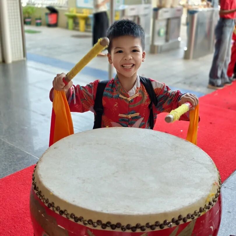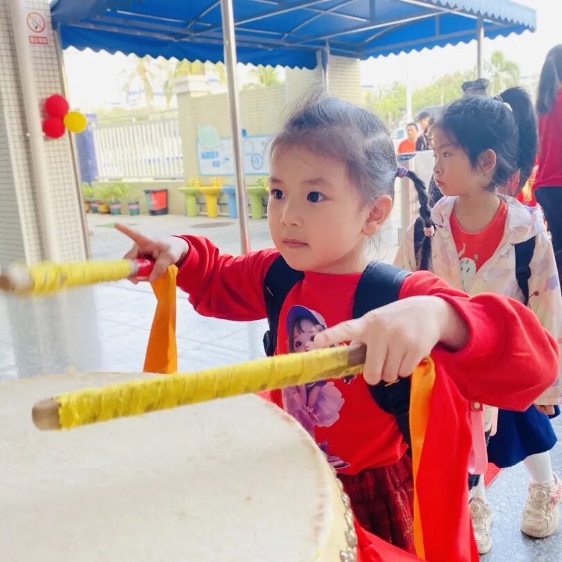 “咚咚咚”的鼓声震天响,宝贝们排着队扬起小手击鼓明志,一下鼓音,愿平安顺遂;两下鼓音,愿聪慧开朗;三下鼓音,愿勇往直前。雄壮的鼓声是奋斗的号角,更是马年奋进的期许,愿宝贝们如骏马般,不畏挑战,向阳生长。