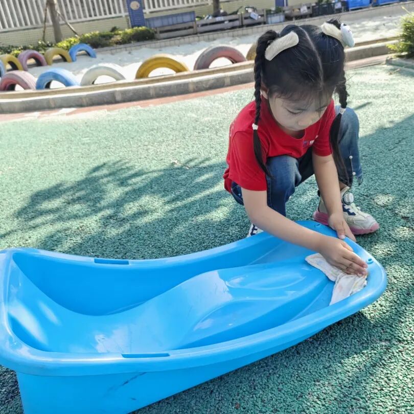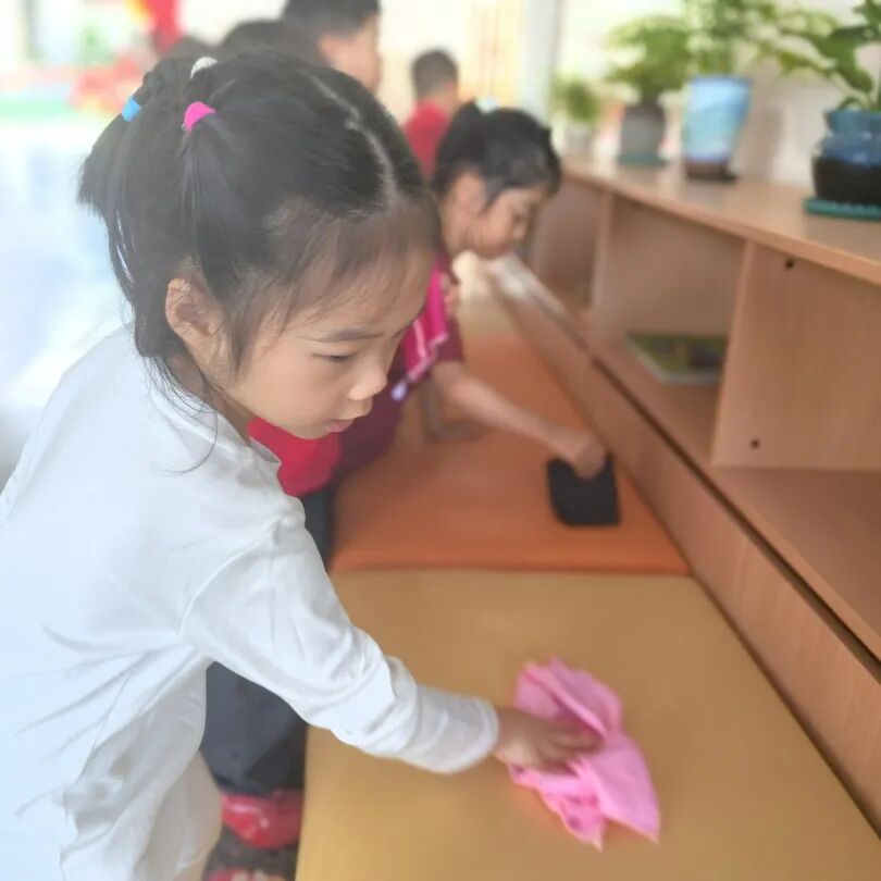 “生活即教育”,二幼的孩子们以实际劳动拉开了新学期的序幕。他们纷纷化身“劳动小卫士”,擦桌子、收玩具、整理床铺等。在大家的共同努力下,为新学期营造出了一个干净整洁的环境。而孩子们在劳动过程中,不仅学会了合作与责任,还感受到了集体劳动的乐趣。