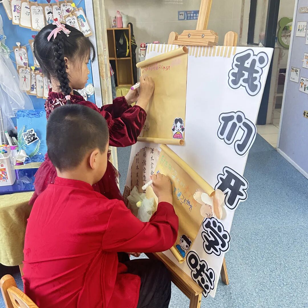 班级里,马年主题活动趣味开启,班级签到台变了样,有的写下新年的祝福,有的在马背上画上新年元素图案。宝贝们在动手操作中感受马年文化,在欢声笑语中解锁传统文化小知识。一颗“福蛋”,一份期许,开学日,园长妈妈的暖心巡班,让教育的温度在指尖传递。老师与孩子们一张张灿烂的笑脸,一个个欢快的身影,定格成马年开学最美的画面。