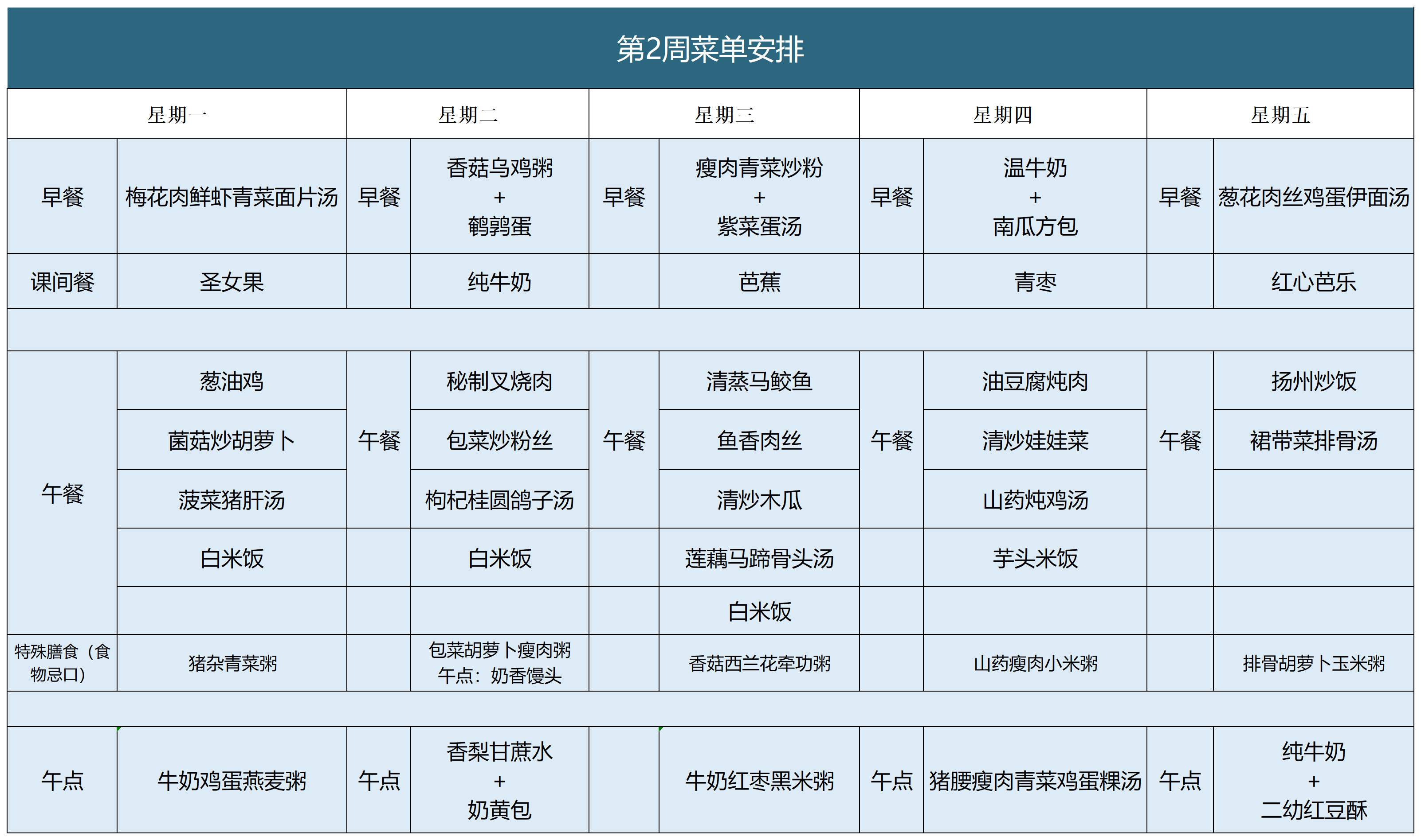 第二周食谱