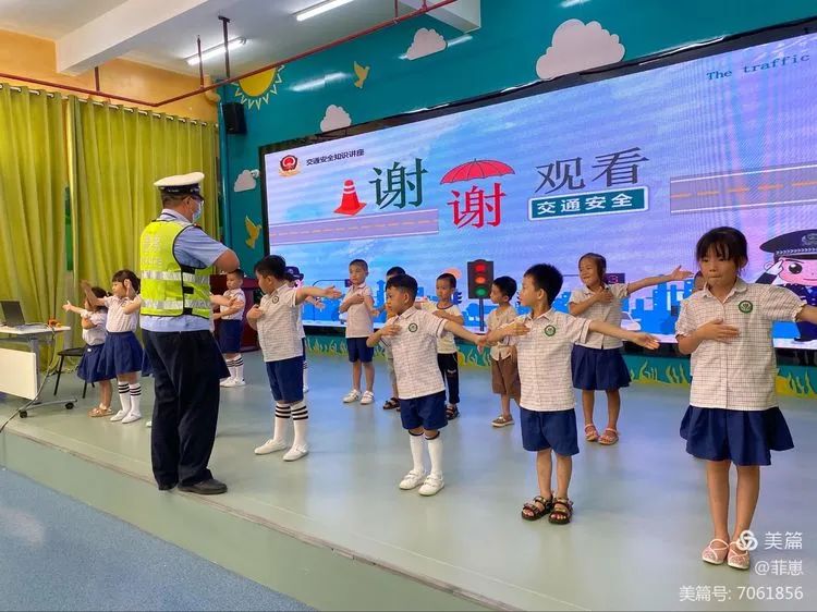 交警叔叔也现场教小朋友们学习了一些常见的交通指挥手势,这也进一步加深了小朋友们对交通安全知识的印象,让小朋友们真正感受到遵守交通法律法规的重要性,养成自觉遵守交通安全法律法规、维护道路交通秩序的良好习惯。