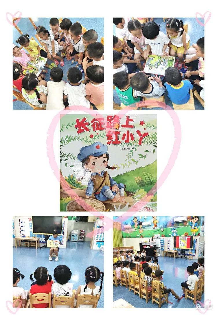 为了让孩子更直观地了解革命先烈英雄的事迹,老师带领着孩子共读《小宣传员》《雷锋的故事》《长征路上红小丫》《倔强小红军》《闪闪的红星》《鸡毛信》等红色故事绘本。在聆听红色经典故事的过程中,孩子们感受到红色精神的强大,体会到共产党的伟大。