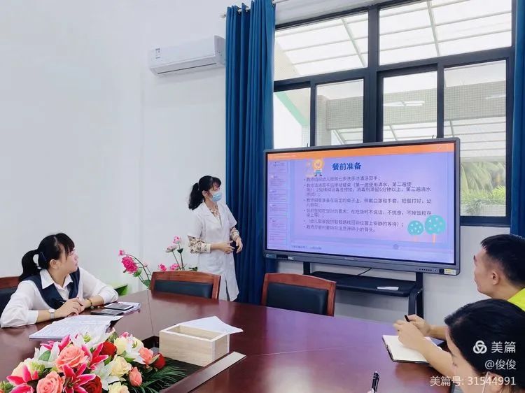 进餐是幼儿一日生活中的重要环节之一,针对当前各班级用餐环节的现况,保健员吴海鹰老师和大家一起进行了规范进餐环节的专题培训,随后请各班级的保育老师们根据本班幼儿的用餐情况,聚焦“餐前准备、餐中指导、餐后整理”三个问题进行研讨和好经验交流。