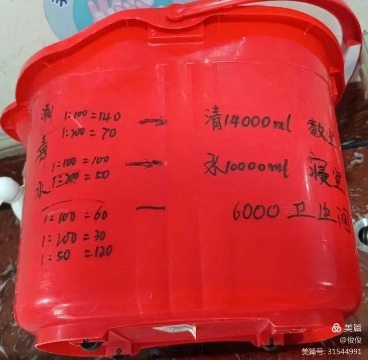 1.按照配制比例,根据消毒物品面积,在消毒桶上做好消毒用水到达的标志。