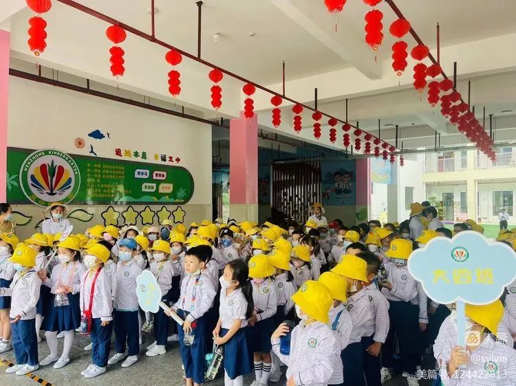 孩子们怀着好奇和期盼的心情准备出发啦!瞧……小队伍排排站得多整齐!