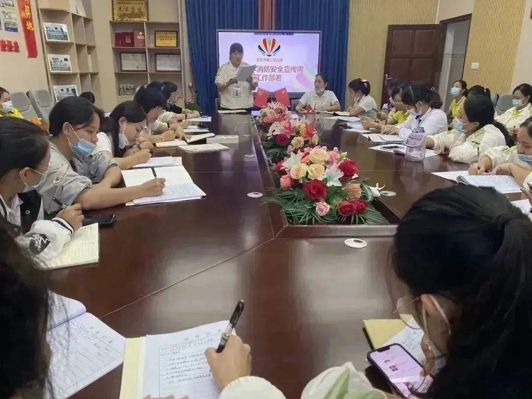 曾桂萍园长召开消防安全月工作部署会议,在会议上解读了上级消防安全相关文件要求以及我园《消防应急疏散演练方案》,强调消防安全活动开展的重要性及必要性。带领教职员工明确演练流程与师幼疏散撤离的具体要求,做到分工明确、责任到人,保证活动顺利开展。