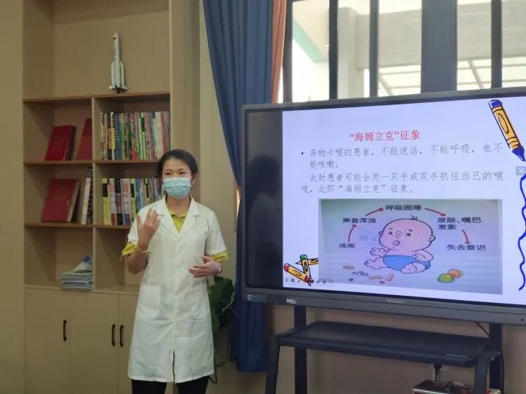 幼儿安全是幼儿园工作的重中之重,为了更好地普及异物卡喉急救知识,提高教师应对突发意外的应急救援能力,2023年4月13日下午,文昌市第二幼儿园保健员吴老师对全体教师进行了“海姆立克”的急救培训。要求每一位老师都能够识别呛咳窒息发生的危险信号,并立即正确使用海姆立克急救法进行抢救。