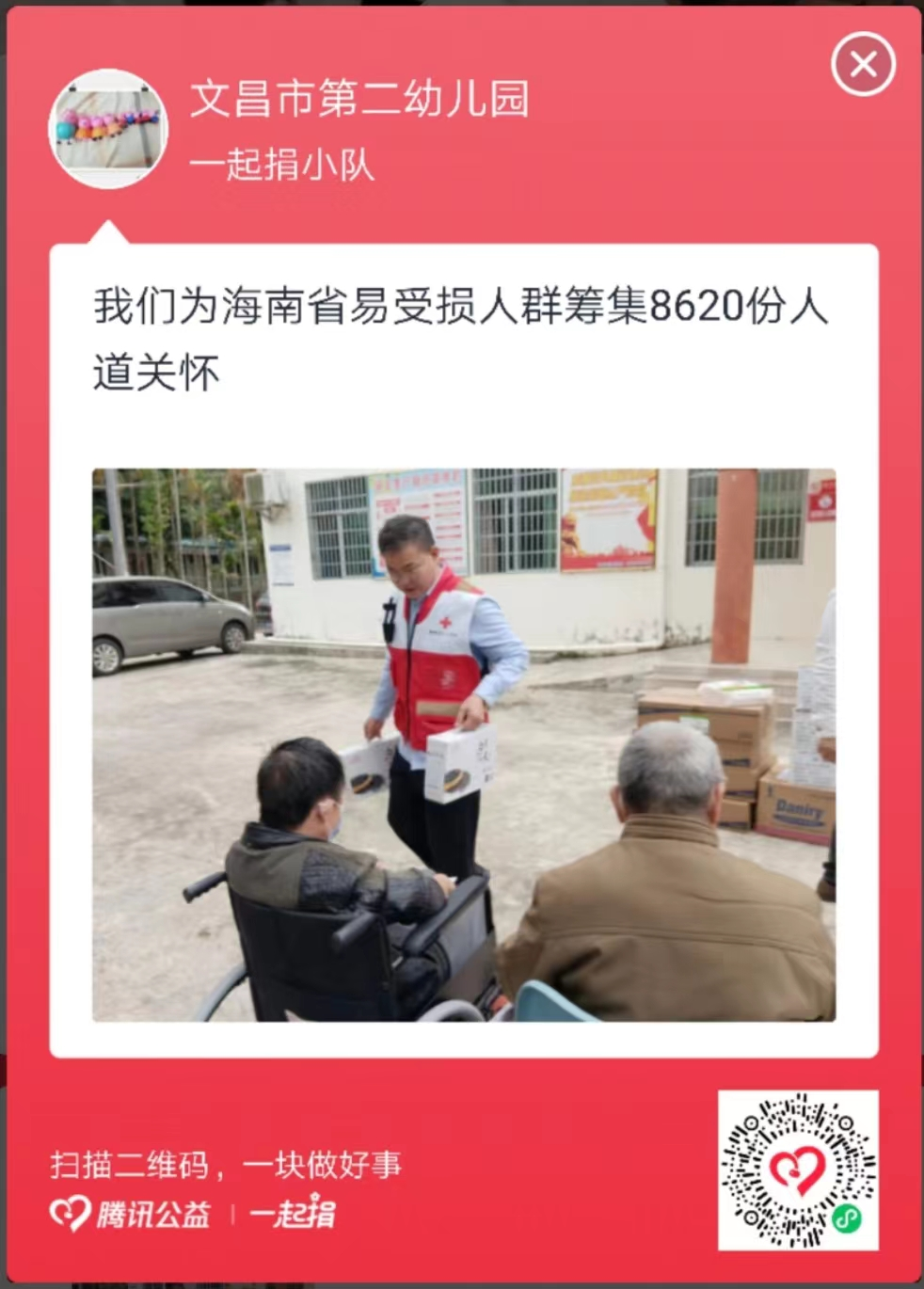 在第76个“5.8世界红十字日”来临之际,中国红十字会总会发起和海南省红十字会推动“5.8人道公益日”网上众筹活动,凝聚更多社会力量参与和支持“人道、博爱、奉献”的红十字事业。根据市委市政府领导批示精神,文昌市红十字会链接发起了“文昌市博爱家园”“文昌市温暖家庭箱”2个公益项目网上众筹子项目,为今年开展为民办实事“急救安全屋建设与应急救护知识技能培训”和困难家庭慰问等活动筹集资金。现向社会发出《爱由心生 人道同行(文昌市2023年“5.8公益日”网上众筹倡议书)》,希望在全市各级党员领导干部的带头下,在全市各界爱心人士的积极参与和大力支持下,筹集更多的爱心救助资金,有力地推进我市的生命安全教育和救助困难群众工作。