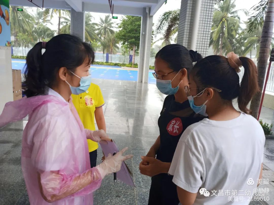教职工来园佩戴口罩,间距一米排队--测温--消毒,体温正常方可进园。