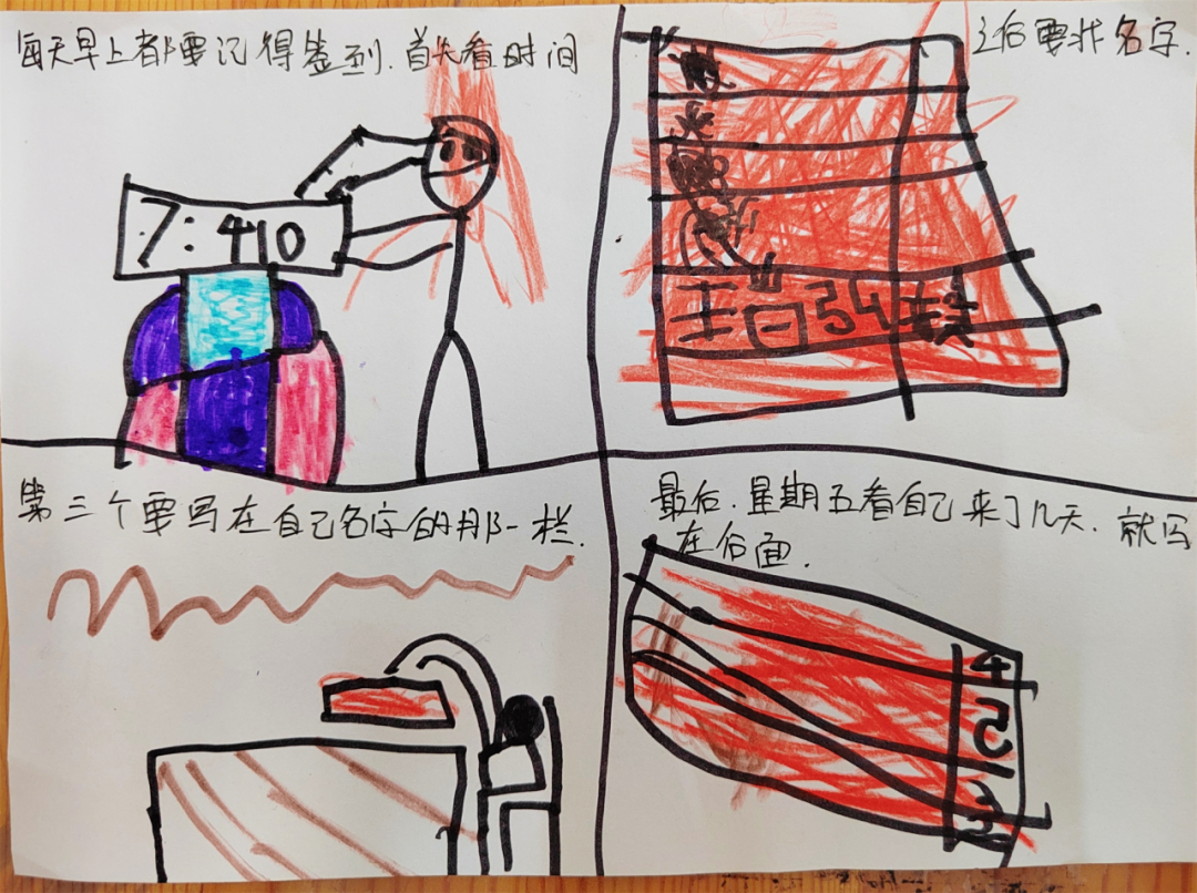 小小的签到,意义深远,孩子们自主签名、自主统计、自主打卡,共同创设了富有童趣的自主签到环境,在习惯养成、时间管理、生活经验、书写表征等方面都有了较大的提升。一日生活皆课程,让我们抓住生活中的教育契机,将教育现场回归儿童视角,做幼儿活动中的观察者、支持者。