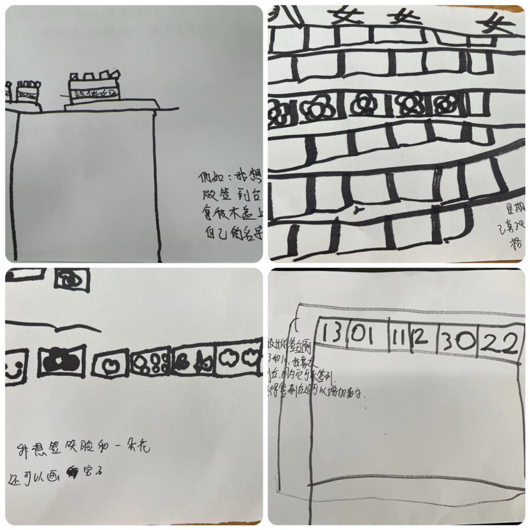 🌟张贝萱:我觉得签到台要放在一个架子上,这样够高,我们站着就能签到,风吹也不会跑。