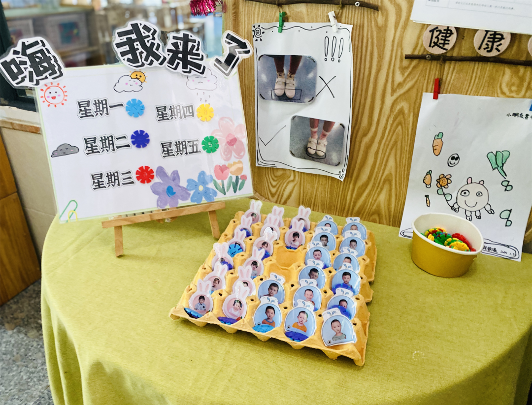 我们该设计什么样的签到形式才能让幼儿主动参与进来?才能在签到活动中兼顾到所有幼儿,并能凸显年龄阶段的发展特征和水平?每个班级在设计晨间签到时,与孩子进行了一次讨论。请他们来设计自己的签到台。