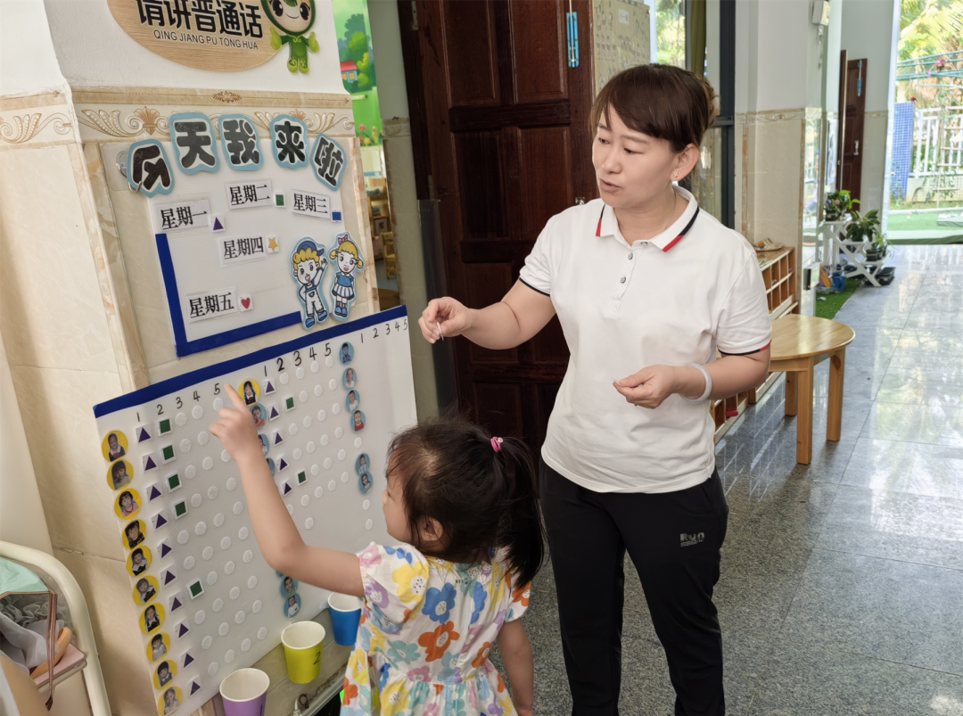 💕林琳:其实签到对孩子们来说是无所谓的一件事情,就是真正能掌握到这件事情,觉得有意义,觉得好玩,觉得可以做的可能永远都是来的早的。那几个孩子因为他签了之后,他就会就会觉得我是第一个来的或者第几,后来更改了你自己的来园时间,然后签到一个星期了之后这个就可以兑换一个小奖品